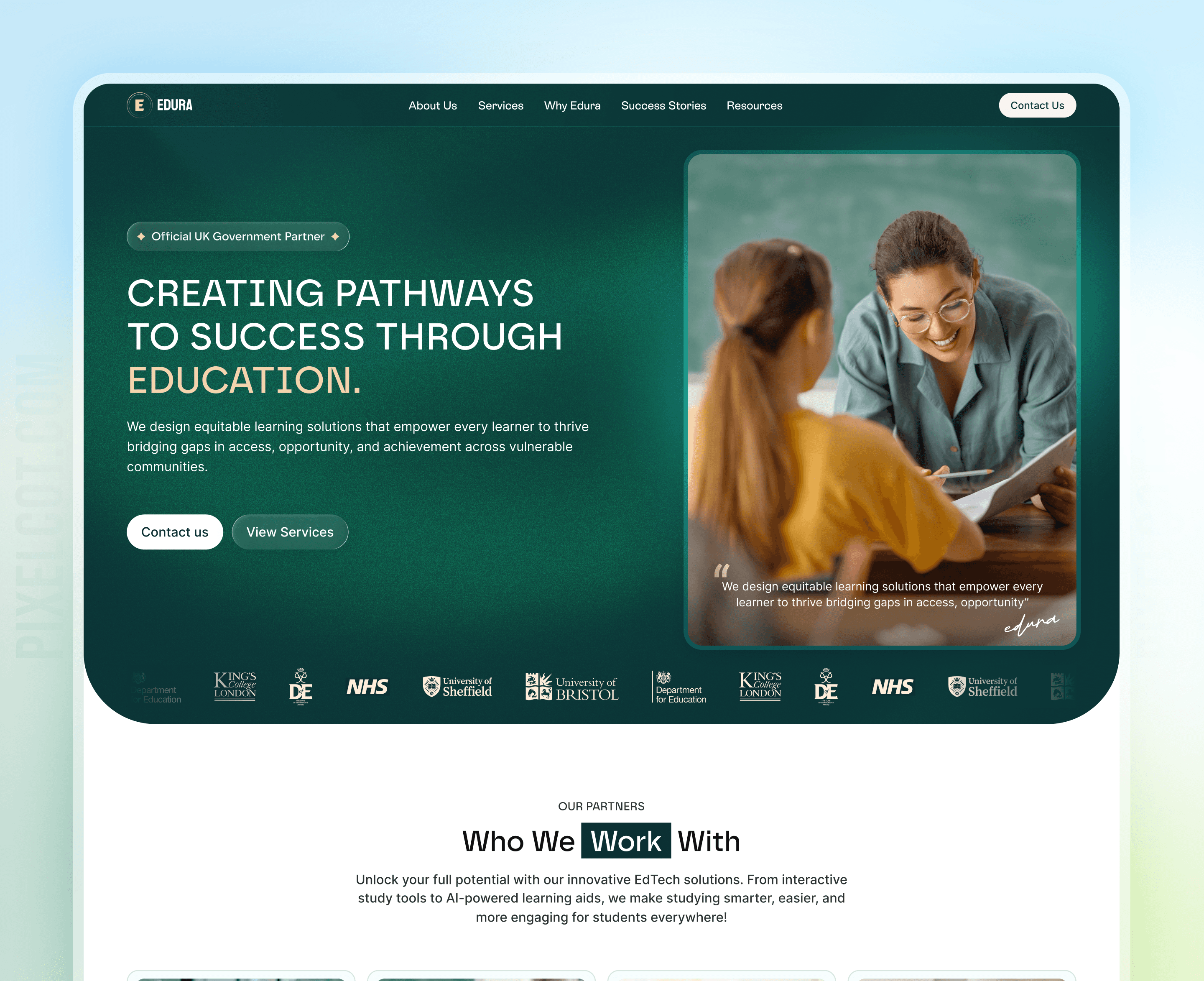 Edura is a modern EdTech platform dedicated to helping learners access high-quality online courses, skill tracks, and certifications. The goal was to build a website that educates, inspires, and converts guiding visitors from curiosity to enrolment with clarity and confidence.